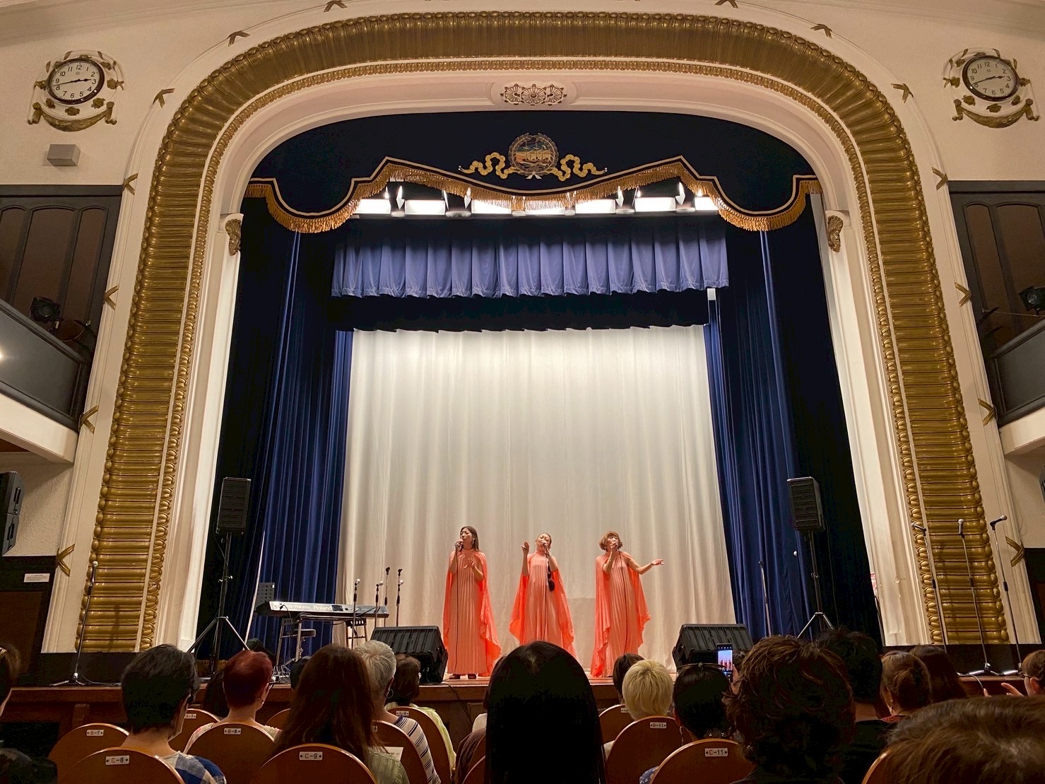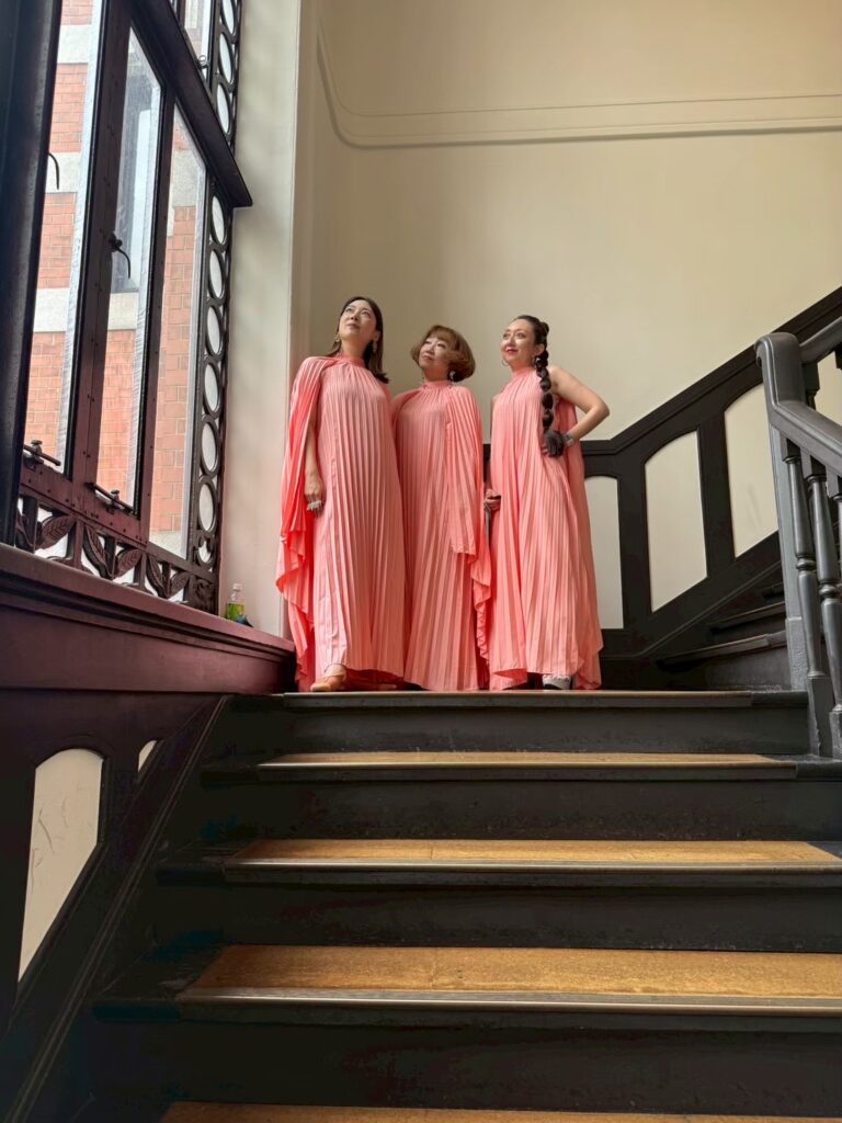 そして8月は横浜ゴスペル祭に当選!横ゴスもマスクワイヤ中心で、昨年は落選もしていたので、大ニュースでした!目黒ゴスペル祭やコロナ禍の動画版横ゴスなど、少しずつ名前を売っておいてよかったねなど言いつつ、話はいつも通り衣装のことへ 笑。今回の横ゴスは2箇所実施で、希望の会場を伝えることができたため、写真映えしそうな横浜市開港記念会館でエントリー 笑。この会場に合う衣装を色々探した結果が、このサーモンピンクドレスでした 笑。ここまで3人で色々なステージを経験してきて、ホールのような大きめの舞台だと存在感が薄いなと思っていて。3人でも大きく、舞台映えする衣裳ということで、決めたのでした。横ゴスくらいしか出番ないかなーと思っていたのですが、とても褒められることが多く、今後もホールでは着ていこうと話しています。